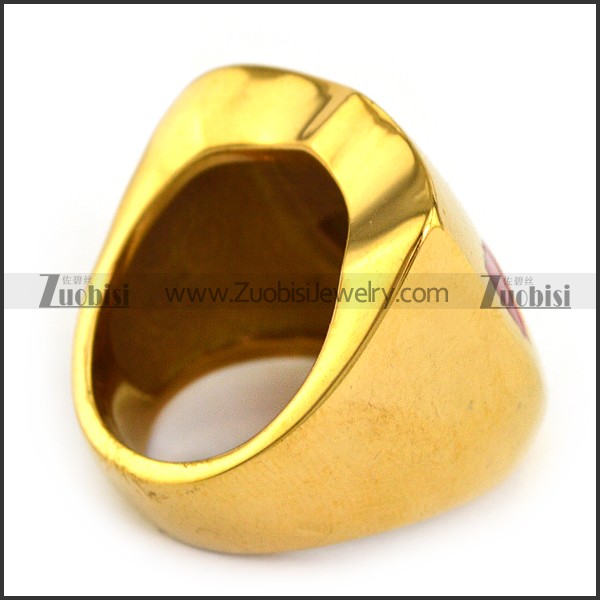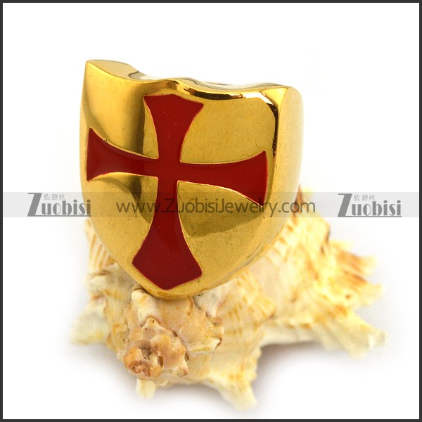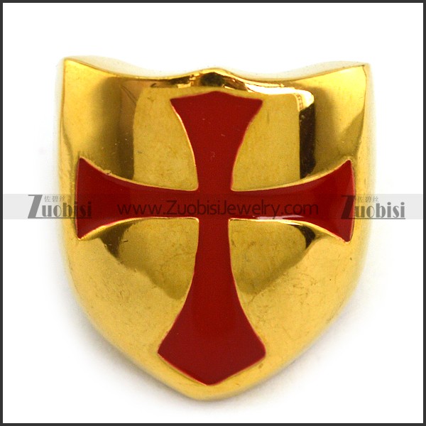 Yellow Gold Stainless Steel Ring Enamel Red Cross r003853