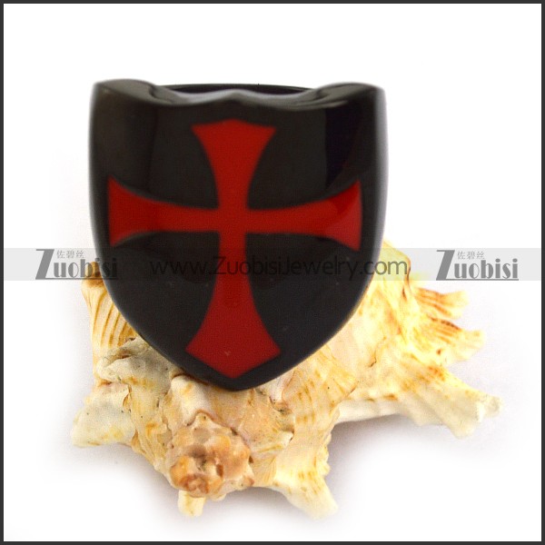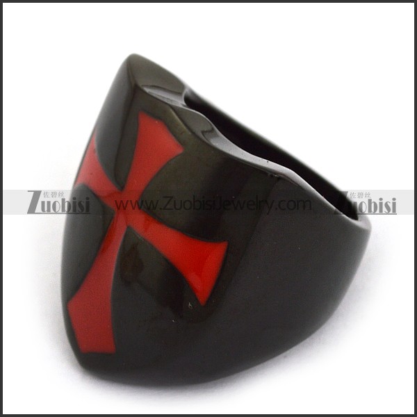 Red Enamel Cross Stainless Steel Black Casting Ring r003854