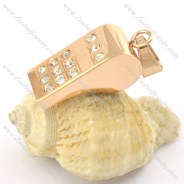 rose gold whistle pendant with 12 clear rhinestones p001384