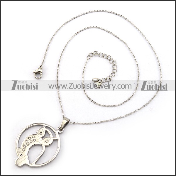 Stainless Steel Owl Necklace Chain with Rhinestones n001338