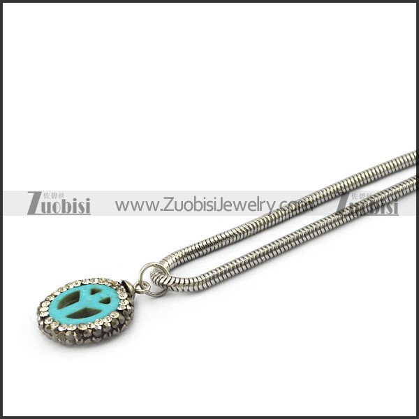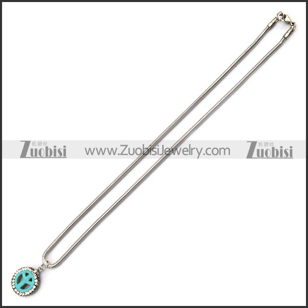 Light Blue Peace Sign Pendant with Snake Chain n001737