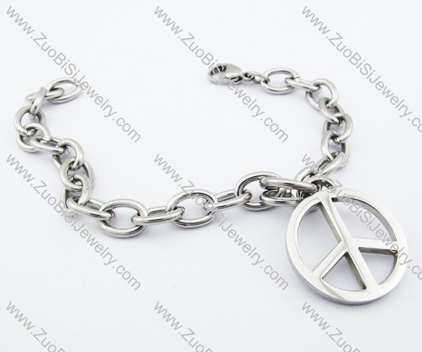 Peace Sign Charm Stainless Steel Link Chain Bracelet - JB200119
