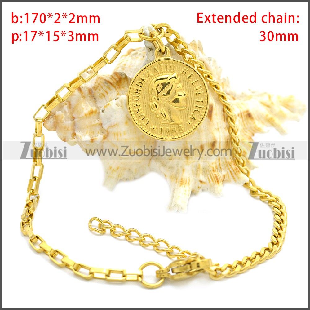 Stainless Steel Bracelet b009767G, size is b:170*2*2mm, p:17*15*3mm, Extended chain:30mm