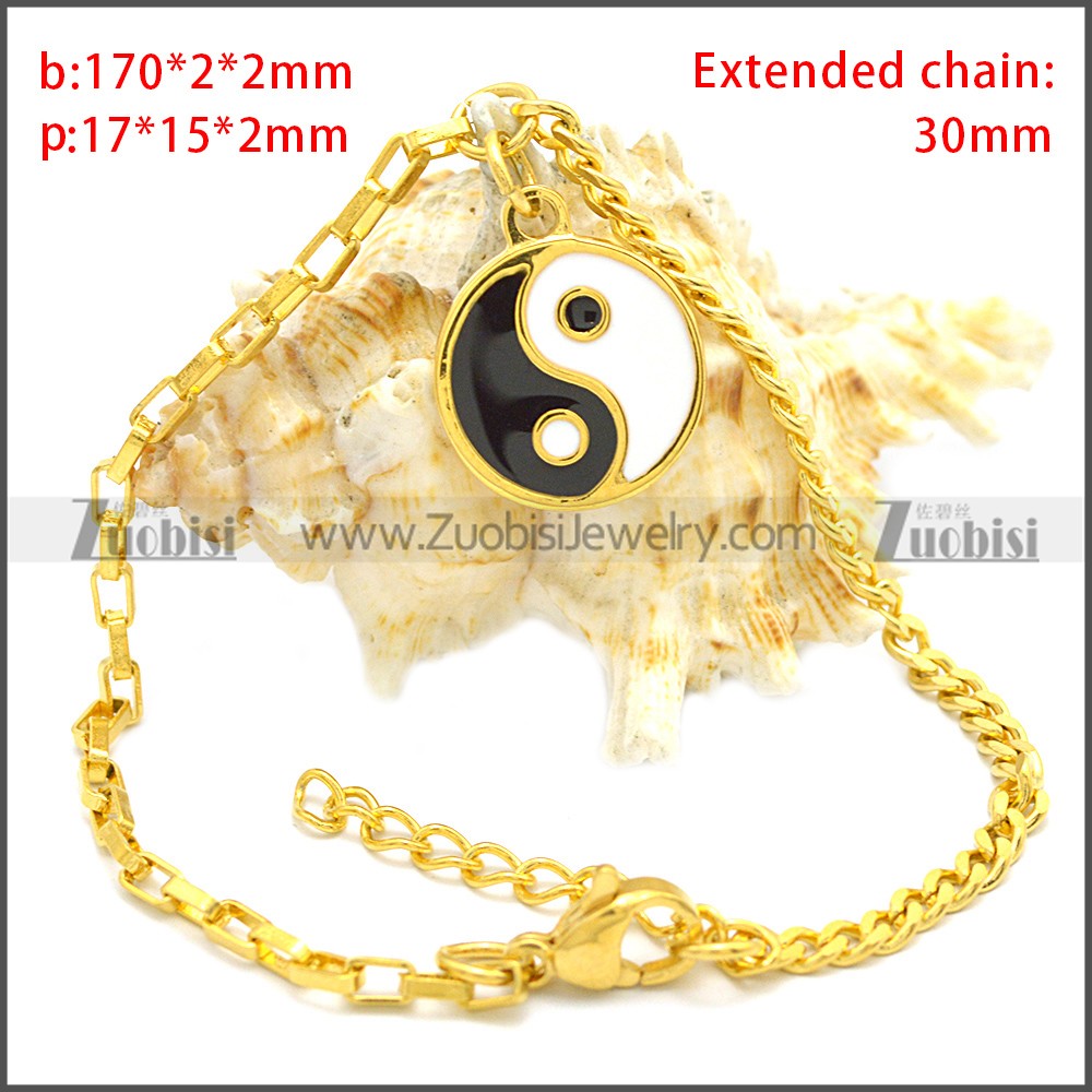 Stainless Steel Bracelet b009769G, size is b:170*2*2mm, p:17*15*3mm, Extended chain:30mm