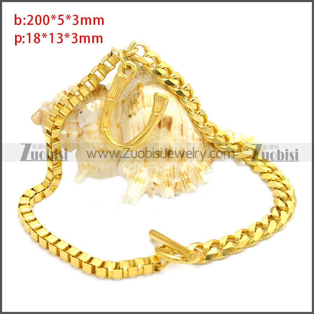 Stainless Steel Bracelet b009801G, size is b:200*5*3mm, p:18*13*3mm