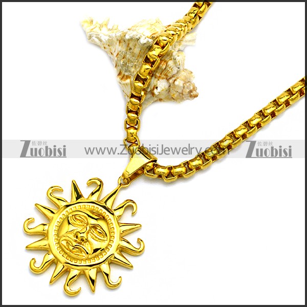Stainless Steel Necklace n002923, size is (chain) 610*5*5mm, (pendant) 46*40*9mm