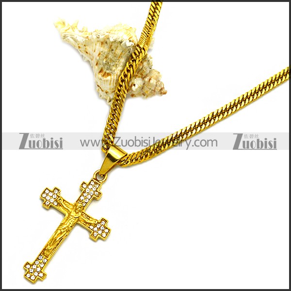 Stainless Steel Necklace n002953, size is (chain) 613*4.5*2mm, (pendant) 52*31*5mm