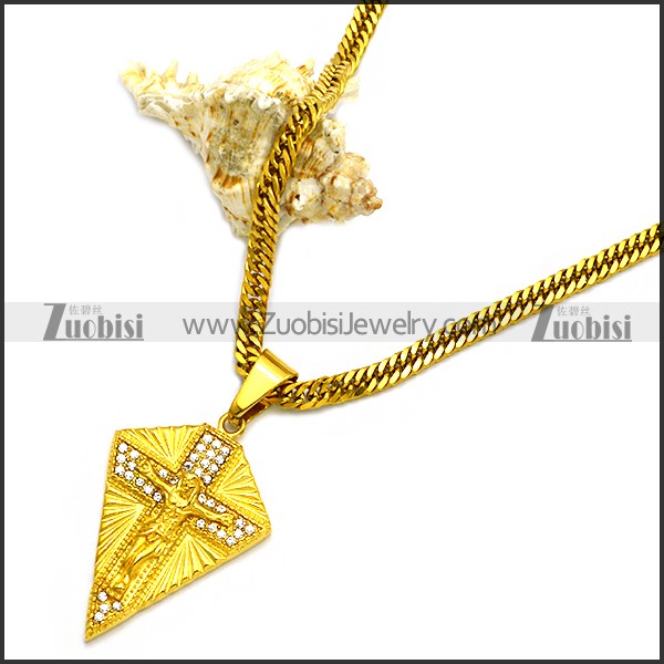 Stainless Steel Necklace n002968, size is (chain) 613*4.5*2mm, (pendant) 54*31*6mm