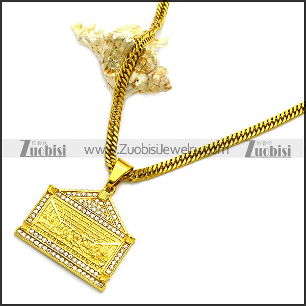 Stainless Steel Necklace n002987, size is (chain) 613*4.5*2mm, (pendant) 42*39*4mm