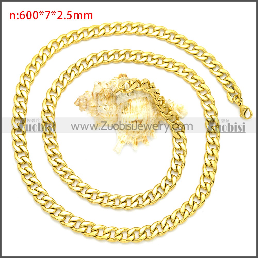 Stainless Steel Chain Neckalce n003085GW7, size is n:600*7*2.5mm