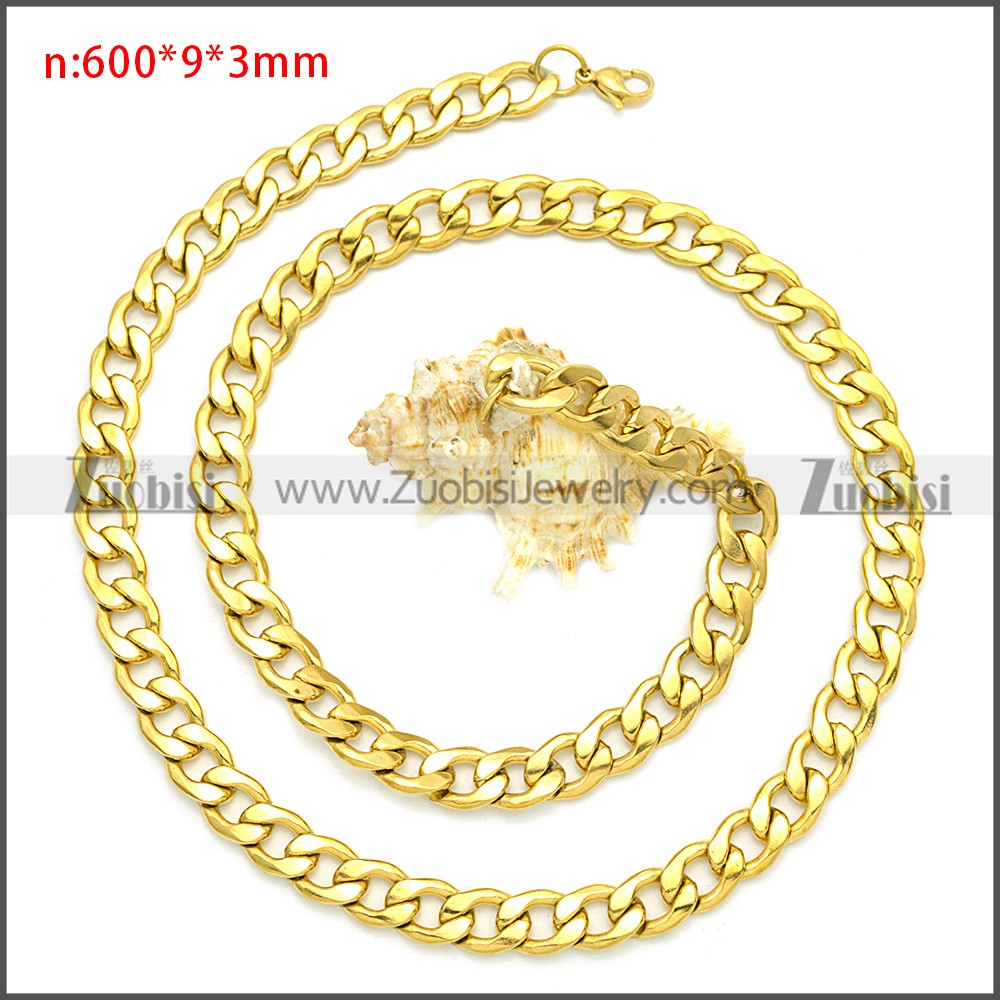 Stainless Steel Chain Neckalce n003085GW9, size is n:600*9*3mm