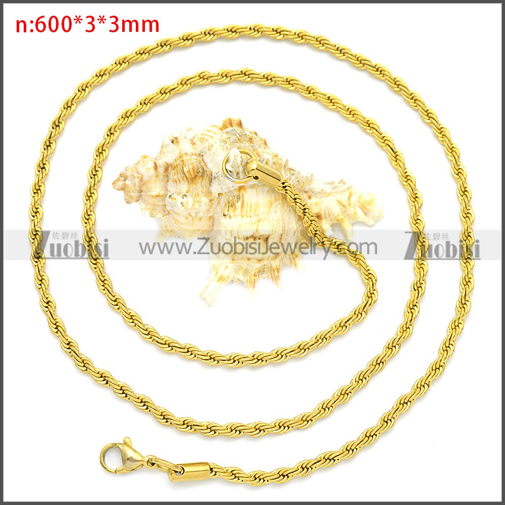 Stainless Steel Chain Neckalce n003086GW3, size is n:600*3*3mm