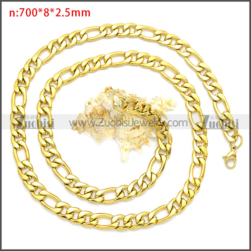 Stainless Steel Chain Neckalce n003093GW8, size is n:700*8*2.5mm