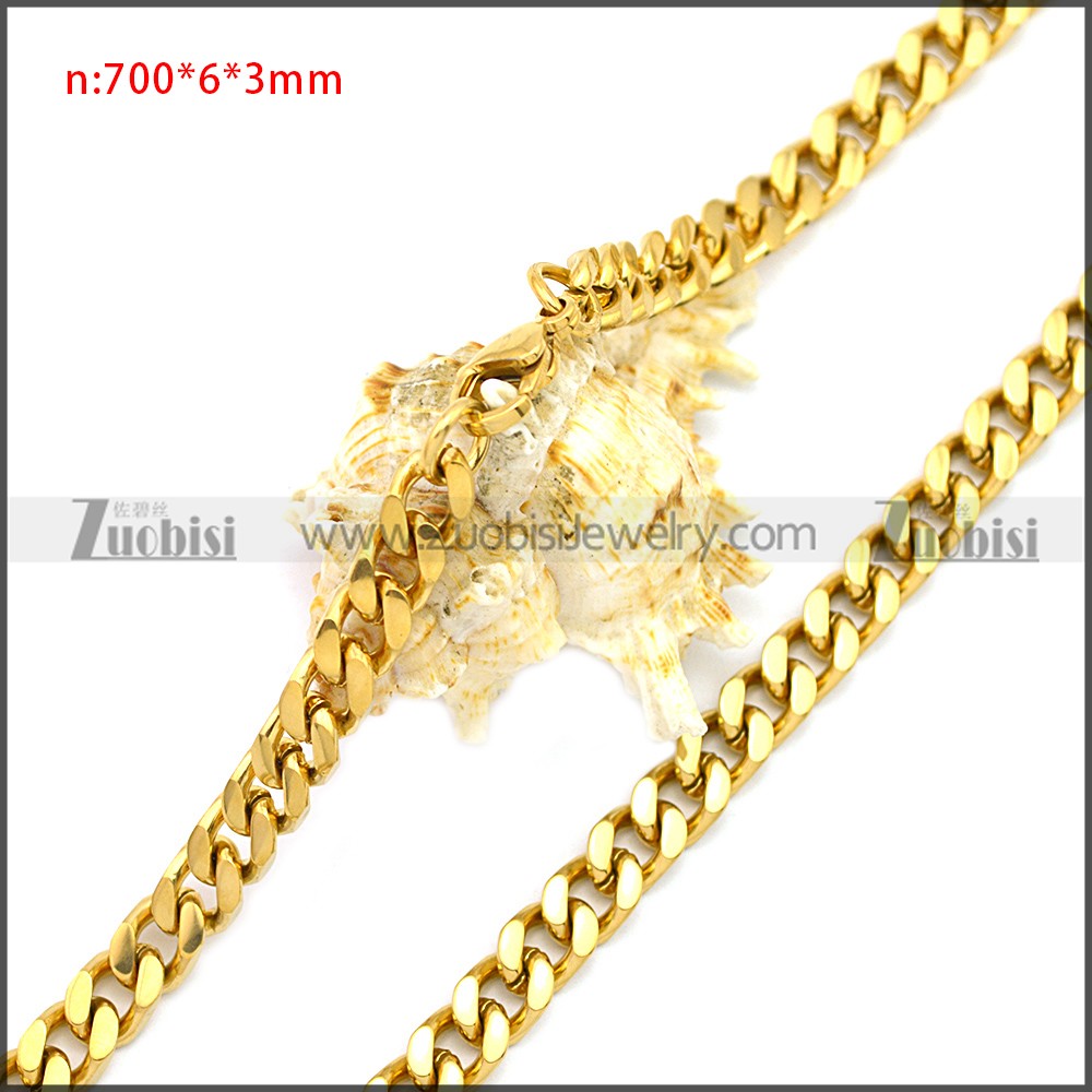 Stainless Steel Chain Neckalce n003116G, size is n:700*6*3mm