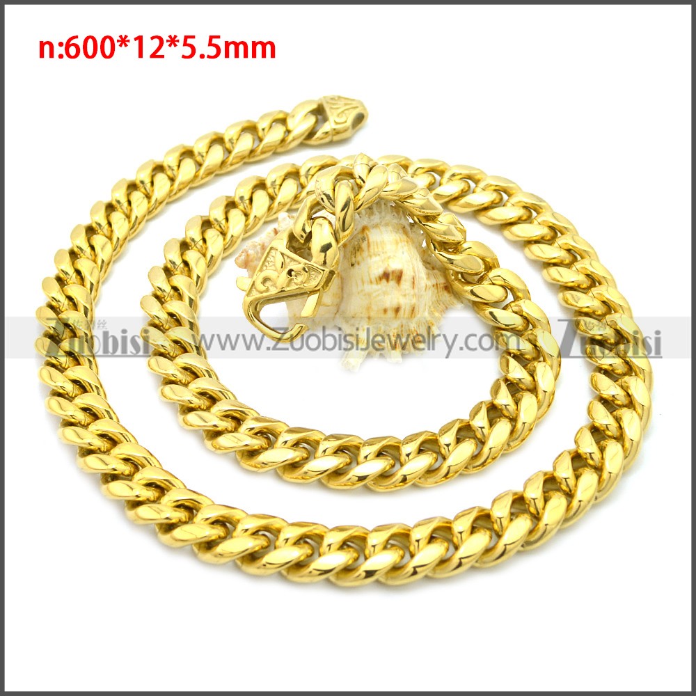 Stainless Steel Chain Neckalce n003133G2, size is n:600*12*5.5mm