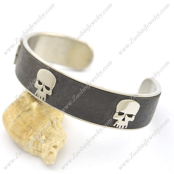 3 Skull Heads Leather Bangle b002997