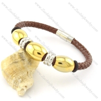 gold plating steel brown leather bracelets b001603