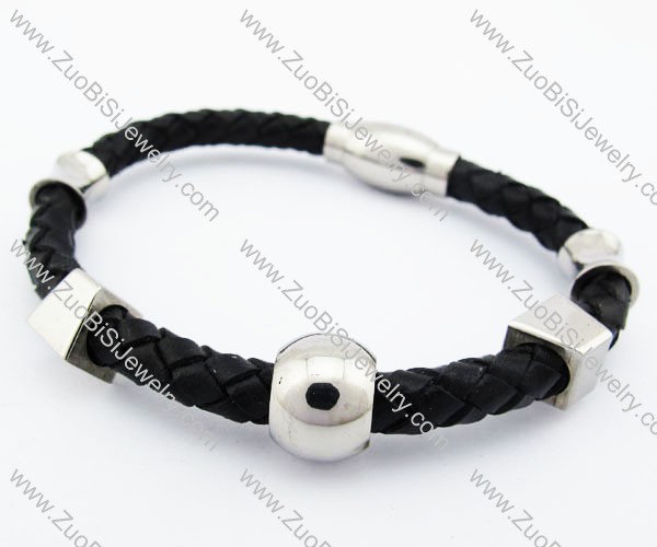 Stainless Steel Six Charms Leather Bracelet - JB400035