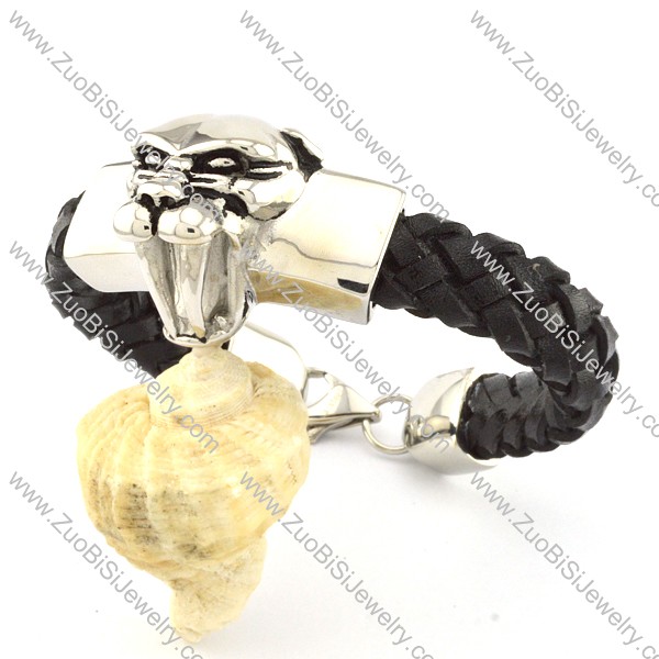 Black Leather Tiger Bracelet for Men -b000999