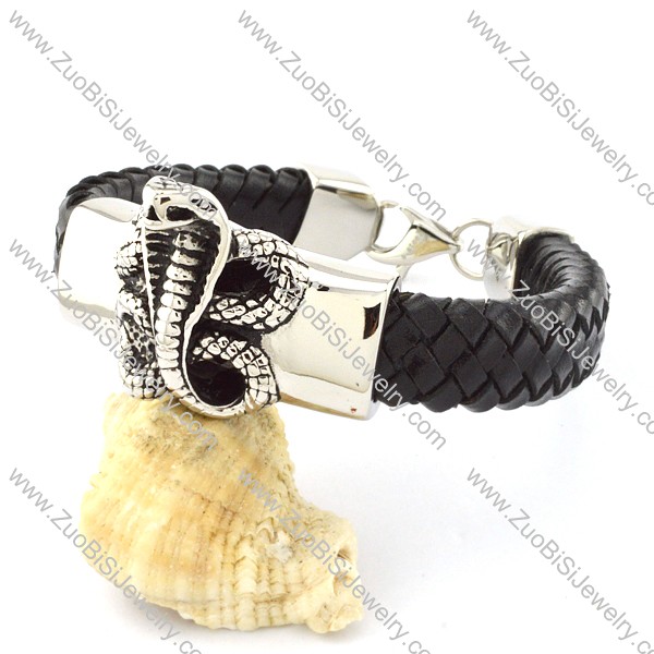 Black Leather Snake Bracelet for Men -b001002