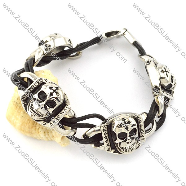 excellent Stainless Steel Leather Bracelet -b001294