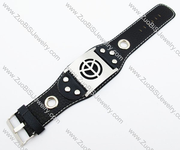 Stainless Steel Sign of Peace Leather Bracelet -JB140046