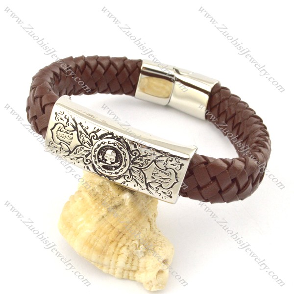 genuine leather bracelet in stainless steel b001932