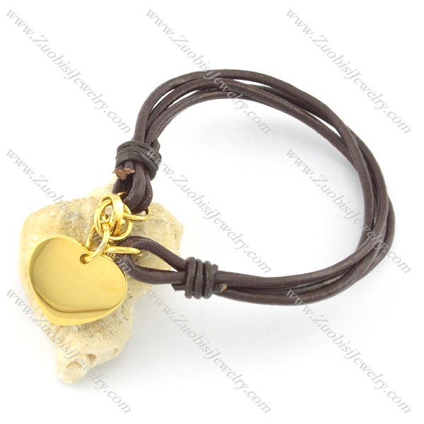 4 small leather cope bracelet with gold heart charm b002075