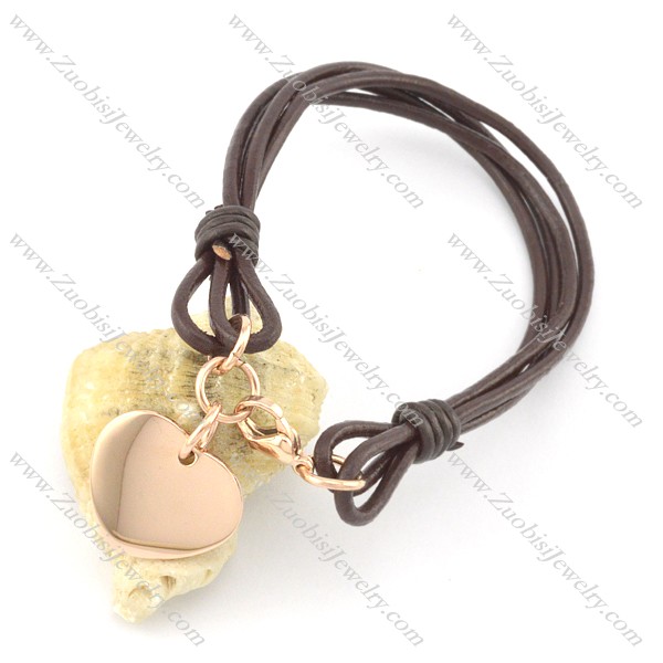 real leather cope bracelet with rose gold heart charm b002076