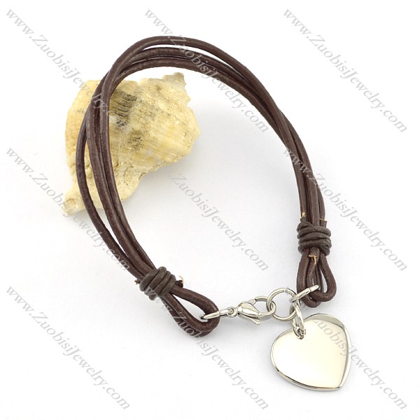 Stainless steel heart-shaped pendant Brown Leather Rope Bracelet b002306