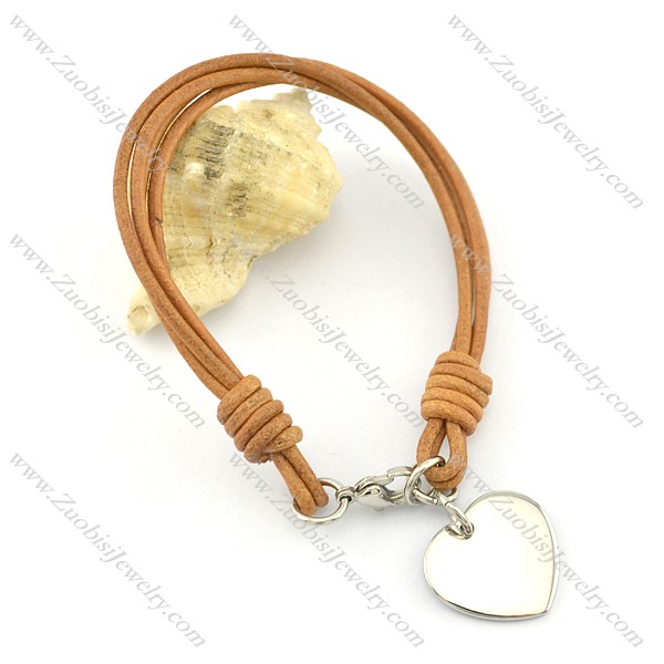 Stainless steel heart-shaped pendant Yellow Leather Rope Bracelet b002307
