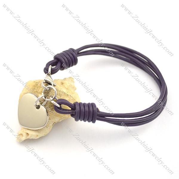 purple leather cord bracelet with heart charm b002556