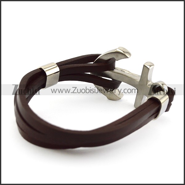 Jesus Anchor Brown Leather Bracelet b006139