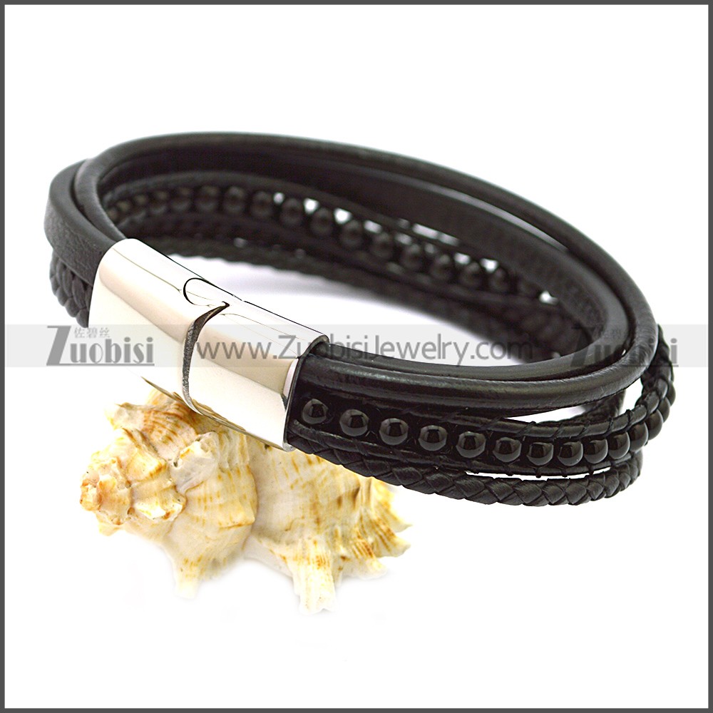 Stainless Steel Leather Bracelet b009808H2, size is 220*14*8mm