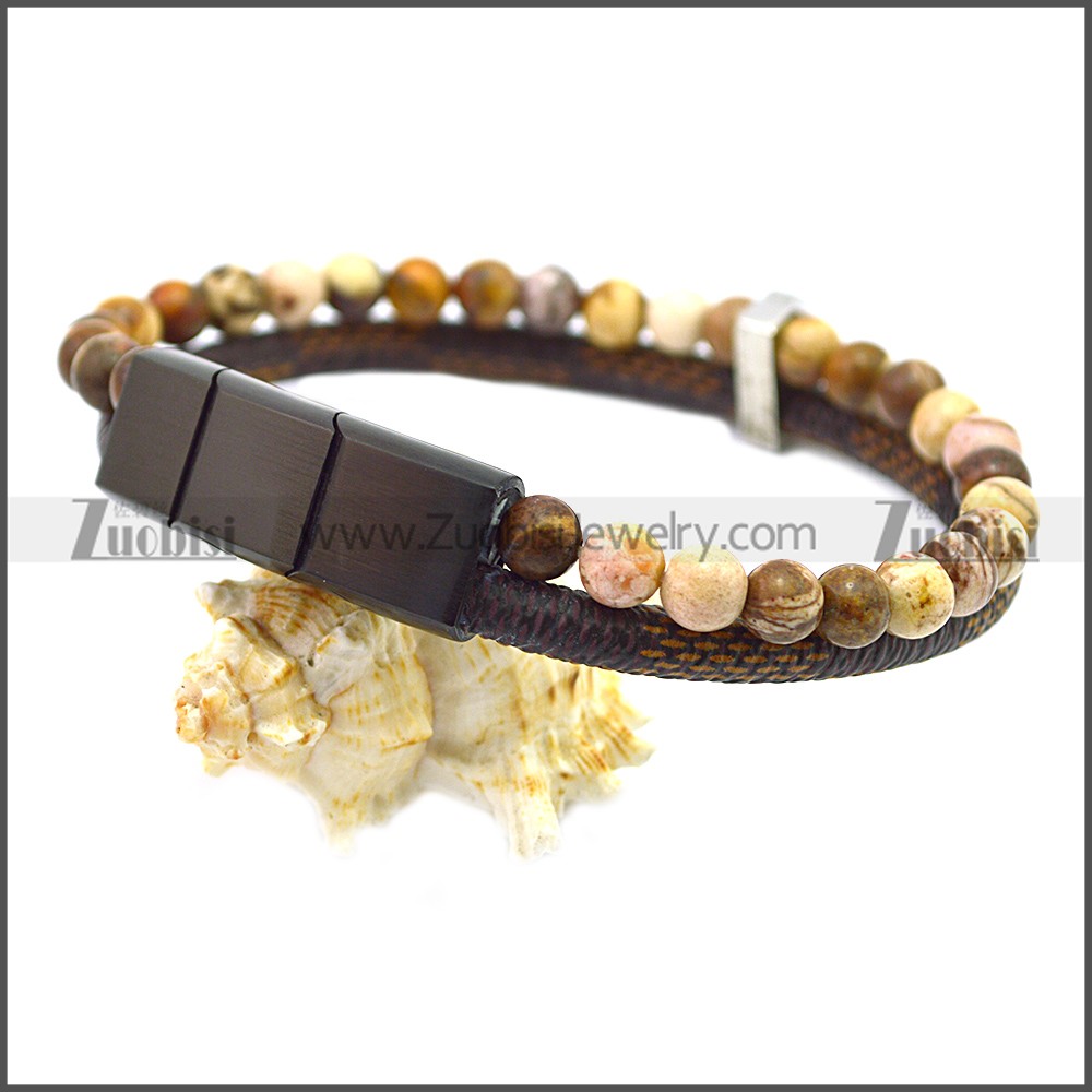Stainless Steel Leather Bracelet b009811K, size is 220*14*8mm