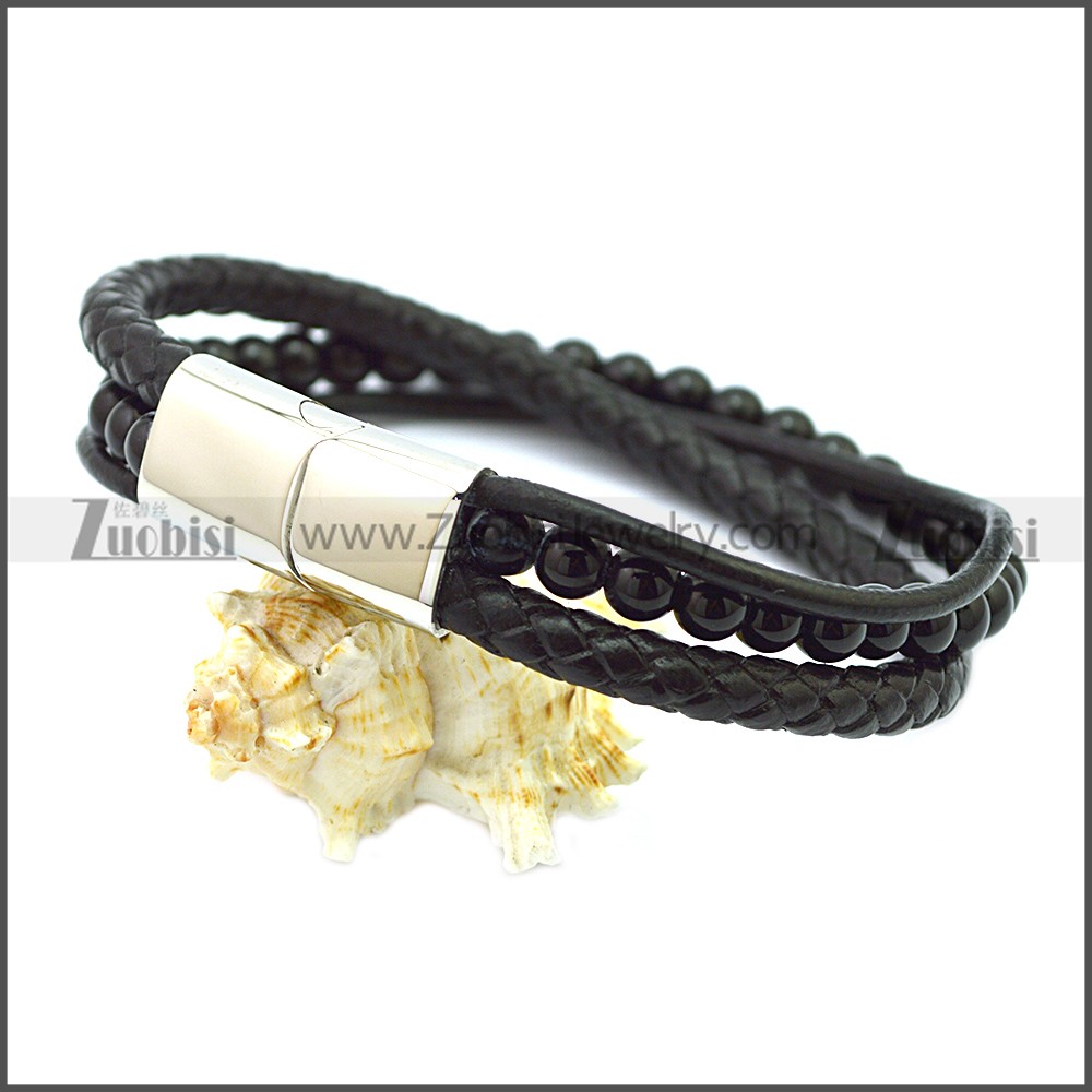 Stainless Steel Leather Bracelet b009816H, size is 220*14*8mm