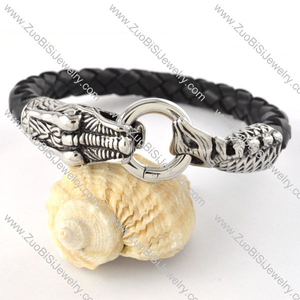 PU Leather Stainless Steel Dragon Bracelet - b000440