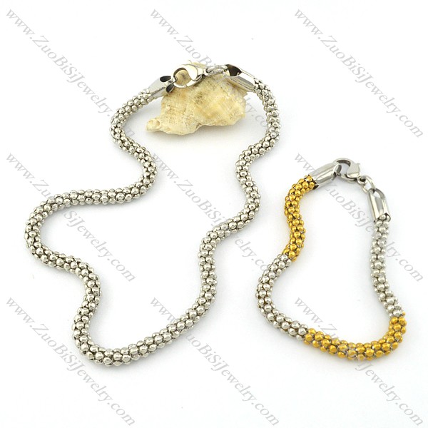 steel corn chain jewelry set included silver necklace and 2 tones bracelet -s000707