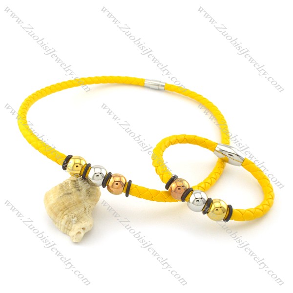 bright-coloured yellow leather jewelry set can wholesale stainless steel jewelry in guangzhou s000749