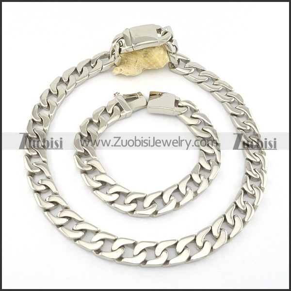 13MM Wide Stainless Steel Casting Necklace and Bracelet Set s000758
