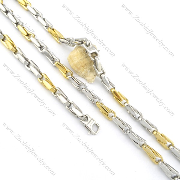 22 inch long steel and gold tone casting necklace set s000833