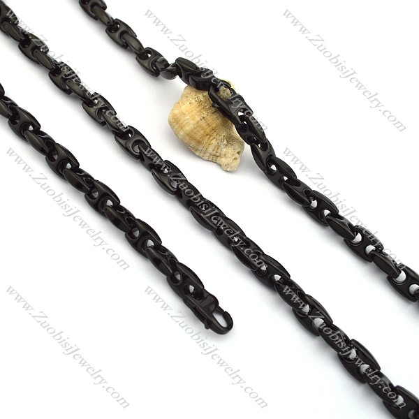 Black-plating casting link chain jewelry set is a hot jewelry in US jewelry market; most people like such kind of jewelry set, especially motorcycle bikers. With its' cool black appearance, normal size in 10mm wide, many young people would like to have one set to wear daily.