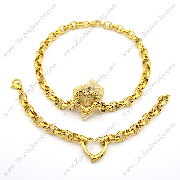 Gold Plating Heart Charm Necklace and Bracelet Set s001168