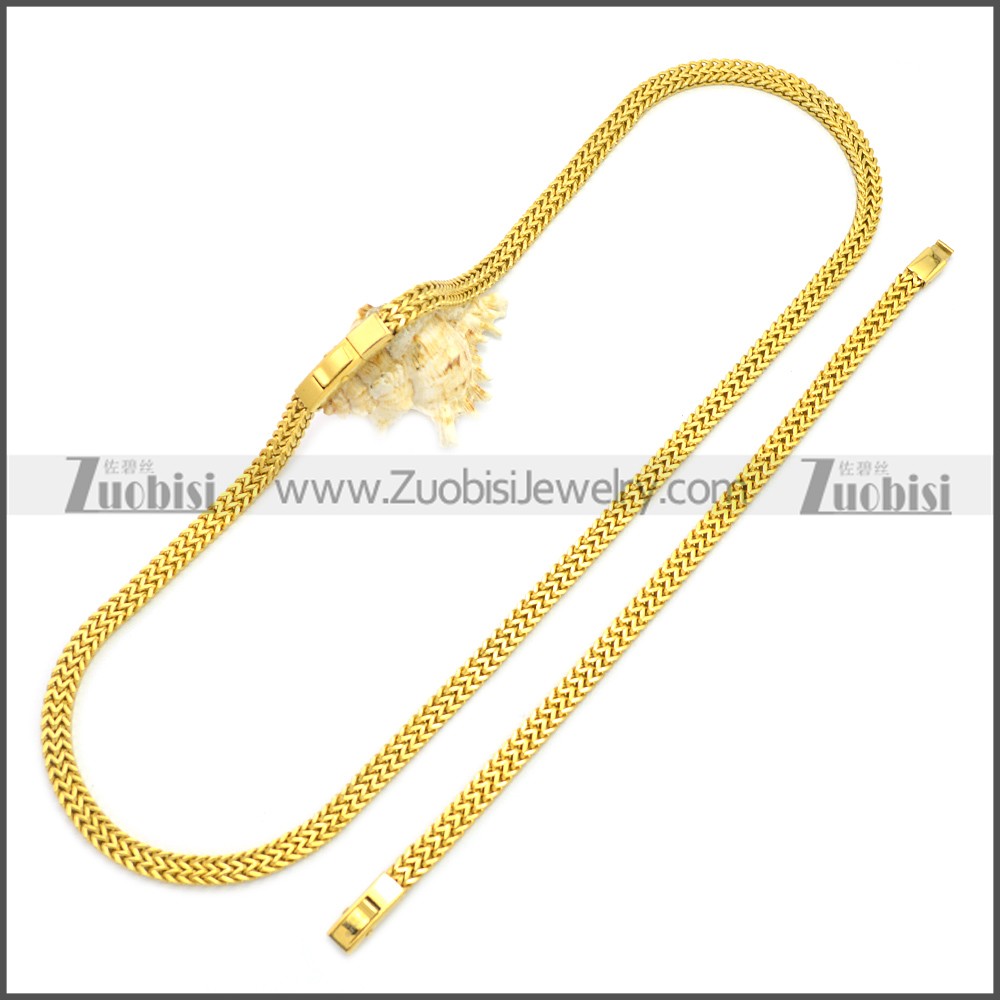 Stainless Steel Jewelry Sets s002942G, size is n:600*6*3mm, b:210*6*3mm