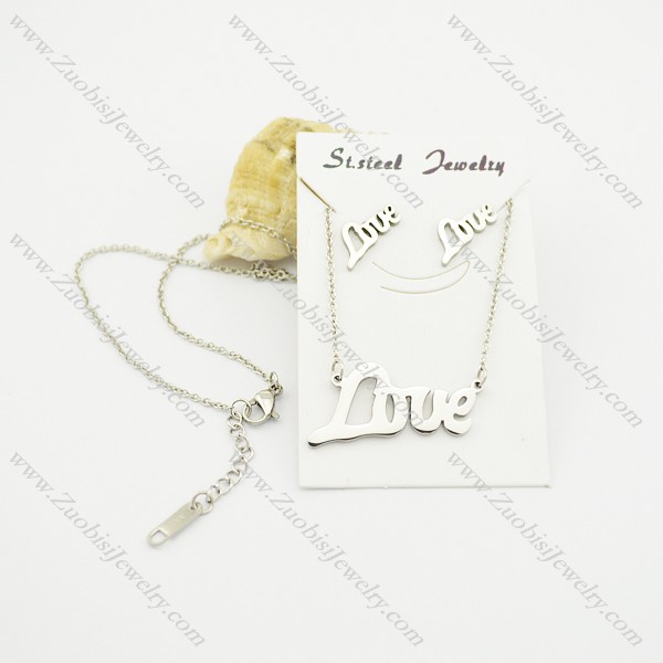 steel tone LOVE pendant and earring jewelry set s000934
