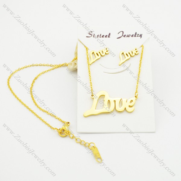 gold-plating LOVE earring and pendant set s000935