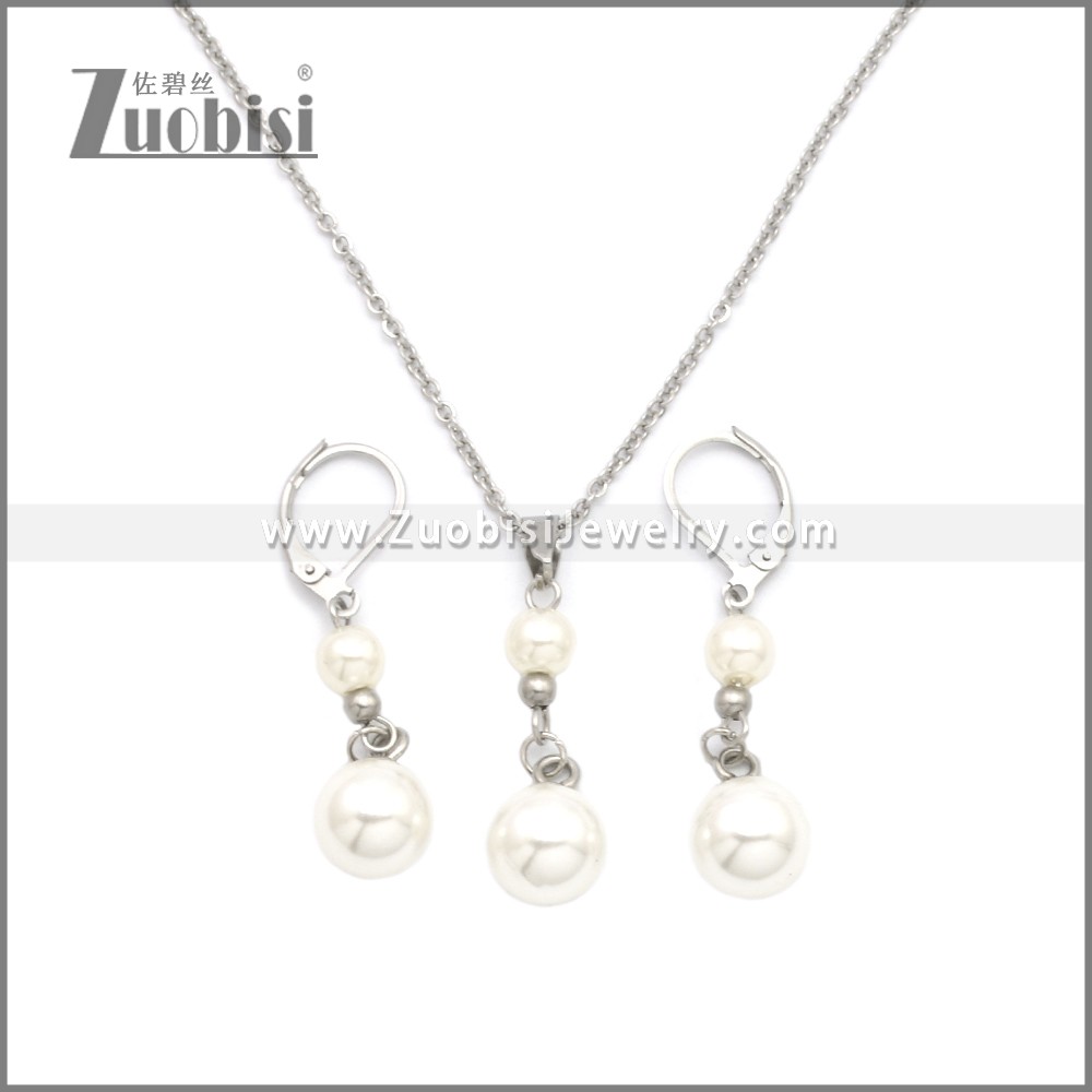Stainless Steel Jewelry Sets s002960S, size is n:425*2*2mm, dia of bead:10mm