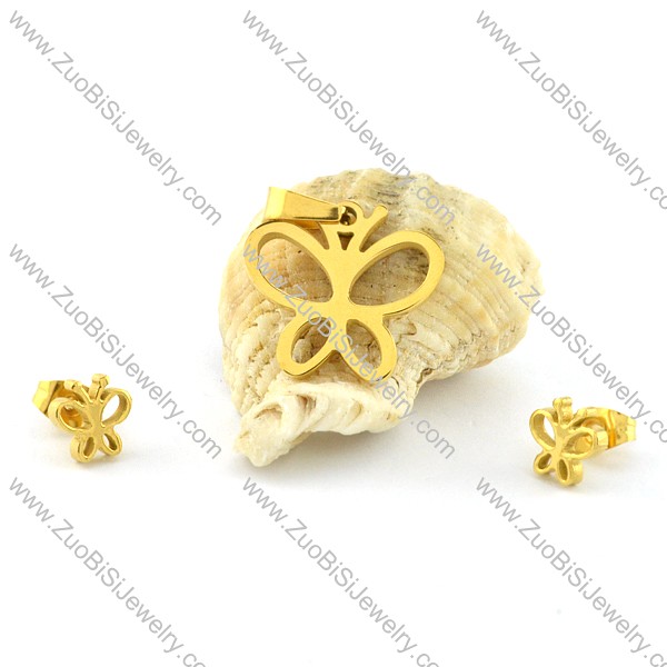 Gold Butterfly Jewelry Sets of Pendant and Earring -s000457