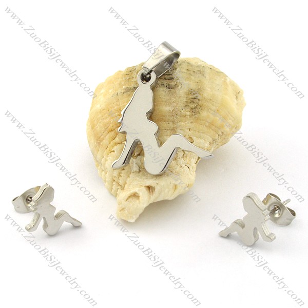 Lovely Jewelry Set in Stainless Steel Metal including Pendant an Earring -s000702