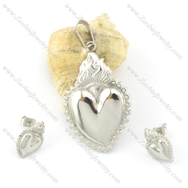 316L stainless steel heart-shaped pendant and earring s000838